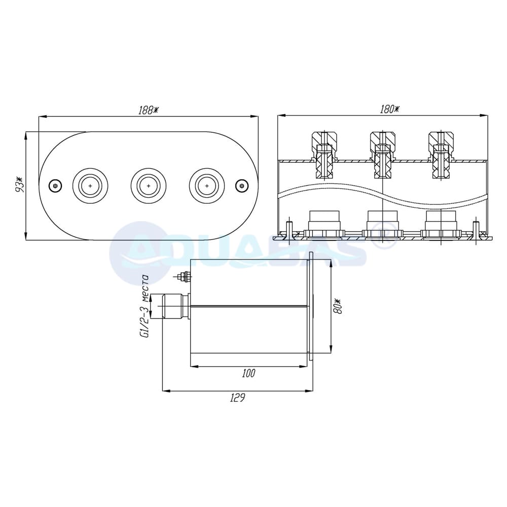 Изготовленные из нержавеющей AISI 316 стали закладные адаптеры модели АД.02.3/1 предназначены для надежной и эстетичной установки в стенку или борт бассейна 3 сенсорных пьезокнопок, управляющих работой различных видов электрифицированного оборудования. Герметично смонтированные при помощи адаптера сенсорные кнопки позволяют безопасно включать или выключать противотоки, гидромассажные форсунки, цепи подсветки, аэромассажные плато, водопады и другие водные аттракционы.