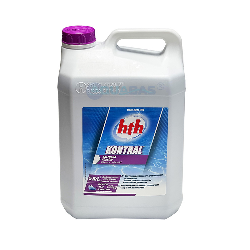 Альгицид для бассейнов hth KONTRAL (объём – 5 литров) обеспечивает чистоту воды благодаря эффективному уничтожению водорослей и предотвращению их повторного появления. Подходит как для профессиональной очистки больших общественных бассейнов, так и частных домашних резервуаров любого размера. Средство удобно использовать: жидкая форма позволяет быстро растворяться в воде без образования пены. Кроме того, альгицид безопасен для кожи и глаз человека при соблюдении инструкции по использованию.