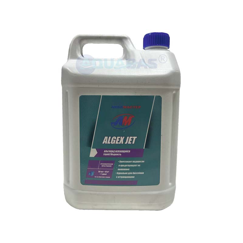 Альгицид не пенящийся ALGEX JET от бренда Gemas (Аквамастер) – эффективное средство против водорослей в бассейне. Представляет собой жидкую форму выпуска в канистре объемом 5 литров. Препарат предотвращает рост водорослей, сохраняя воду чистой и прозрачной. Применение данного средства позволяет снизить расход химических реагентов и поддерживать оптимальный уровень pH воды.