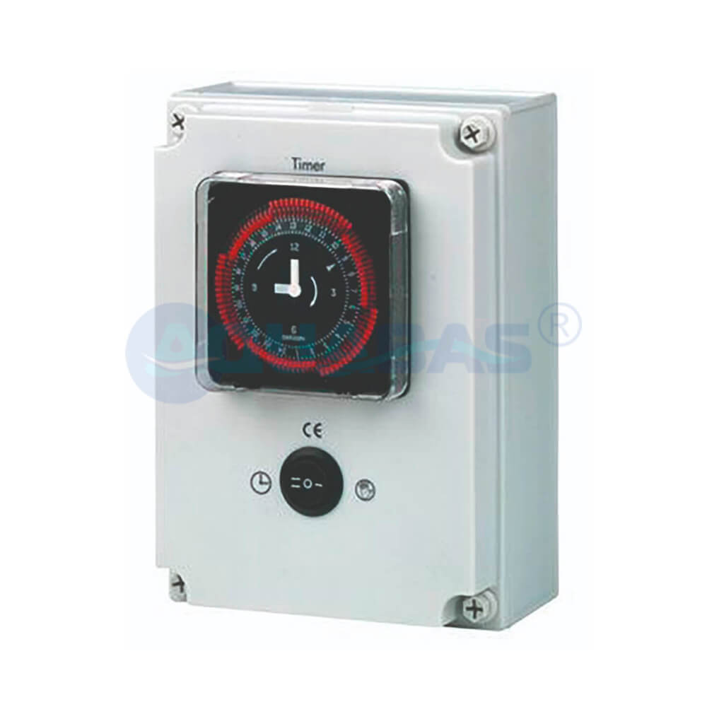 Блок управления фильтрацией OSF S-400/230 - простой в использовании блок управления фильтровальной установкой с часовым реле. Оборудован индикаторами работы фильтрации и обогрева, а также индикатором сбоев и ошибок. Предусмотрен регулятор работы насоса и выключатель освещения.