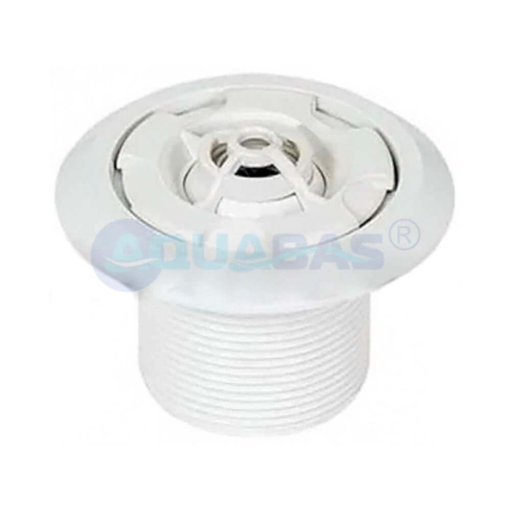 Форсунка служит для подачи воды в бассейн как при его наполнении, так и в процессе рециркуляции. Вода поступает в форсунку через напорный трубопровод. Направление потока воды можно регулировать при помощи поворотного шарика форсунки.