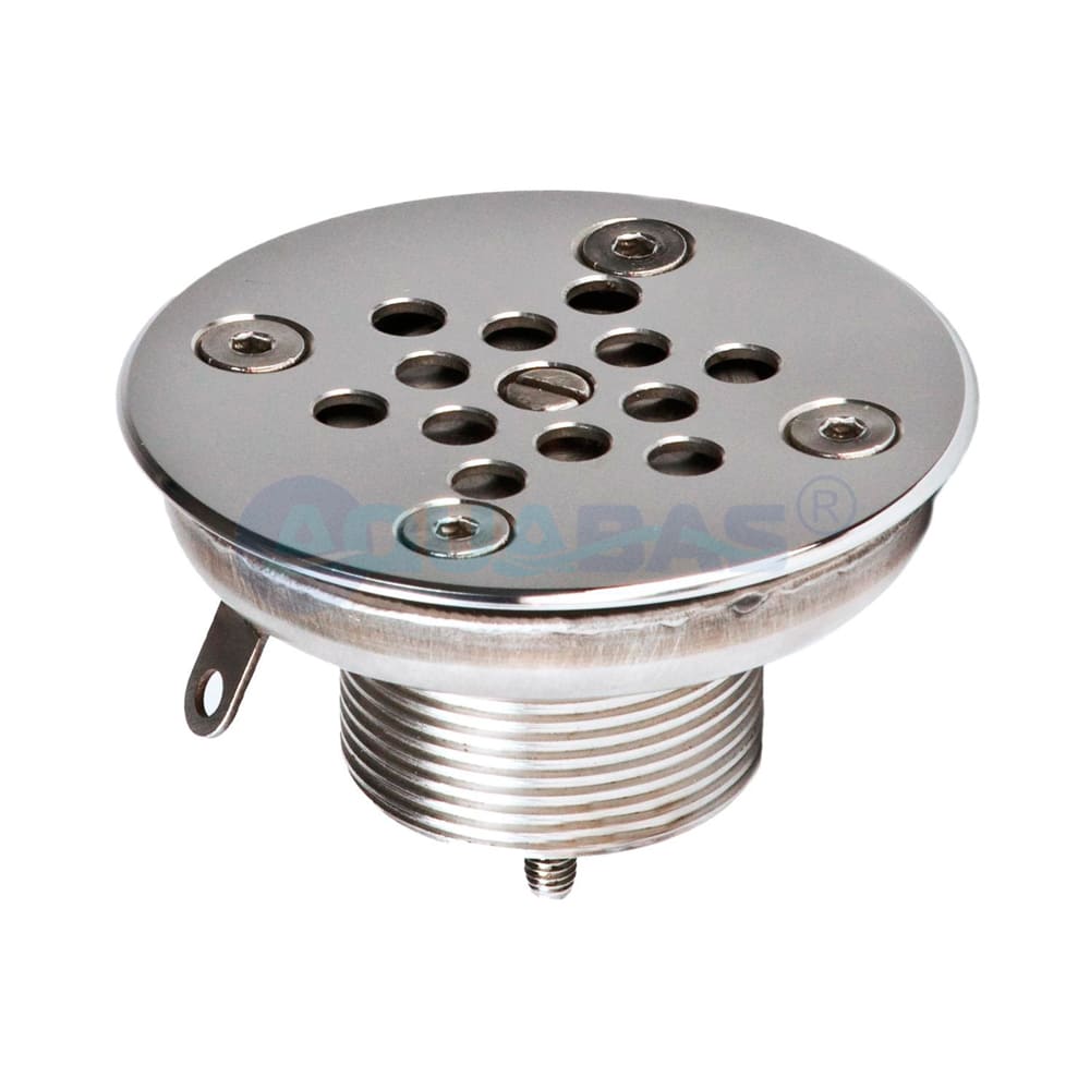 Регулируемая донная форсунка д. 90 (арт. ФП.091.4/1) имеет закладную с наружным резьбовым подсоединением 1,5 дюйма. Резиновые уплотнения в комплекте позволяют произвести аккуратный монтаж изделия. Лицевая панель крепится к закладной четырьмя винтами. Более подробную схему можно посмотреть в Техническом паспорте изделия.
