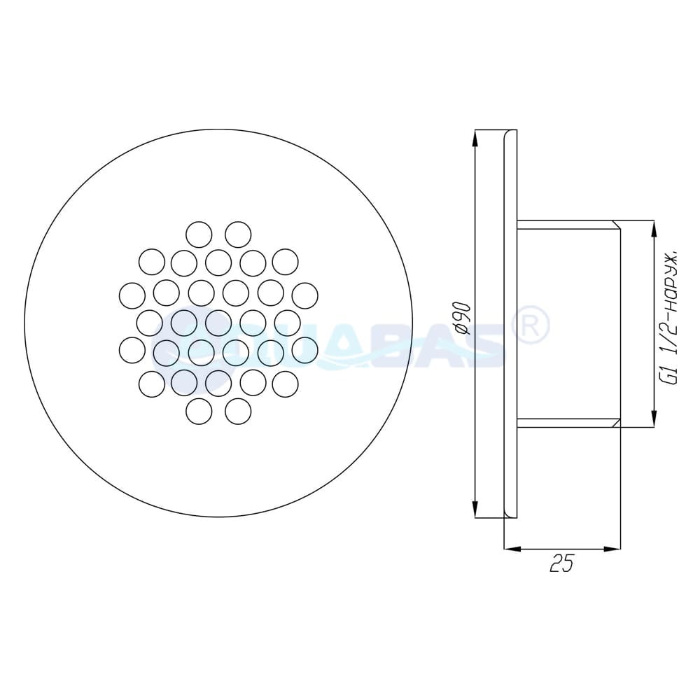 Барботажные форсунки ФП.111.3 представляют из себя лицевую панель с резьбой. Не имеют закладной части, а также дополнительного фланца, поэтому подходят только для бассейнов с отделкой плиткой. Монтаж осуществляется непосредственно в подающую трубу или стеновой проход. Подробную схему можно посмотреть в Техническом паспорте изделия.