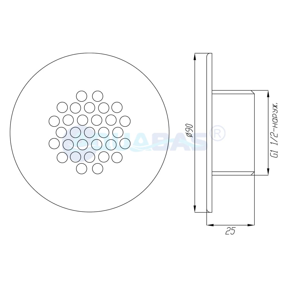 Барботажные форсунки ФП.111.3/1 представляют из себя лицевую панель с резьбой. Не имеют закладной части, а также дополнительного фланца, поэтому подходят только для бассейнов с отделкой плиткой. Монтаж осуществляется непосредственно в подающую трубу или стеновой проход. Подробную схему можно посмотреть в Техническом паспорте изделия.