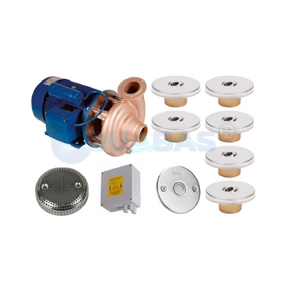 Комплект гидромассажного оборудования Hugo Lahme "Standard" с шестью форсунками, предназначенный для установки в плиточные и пленочные бассейны.