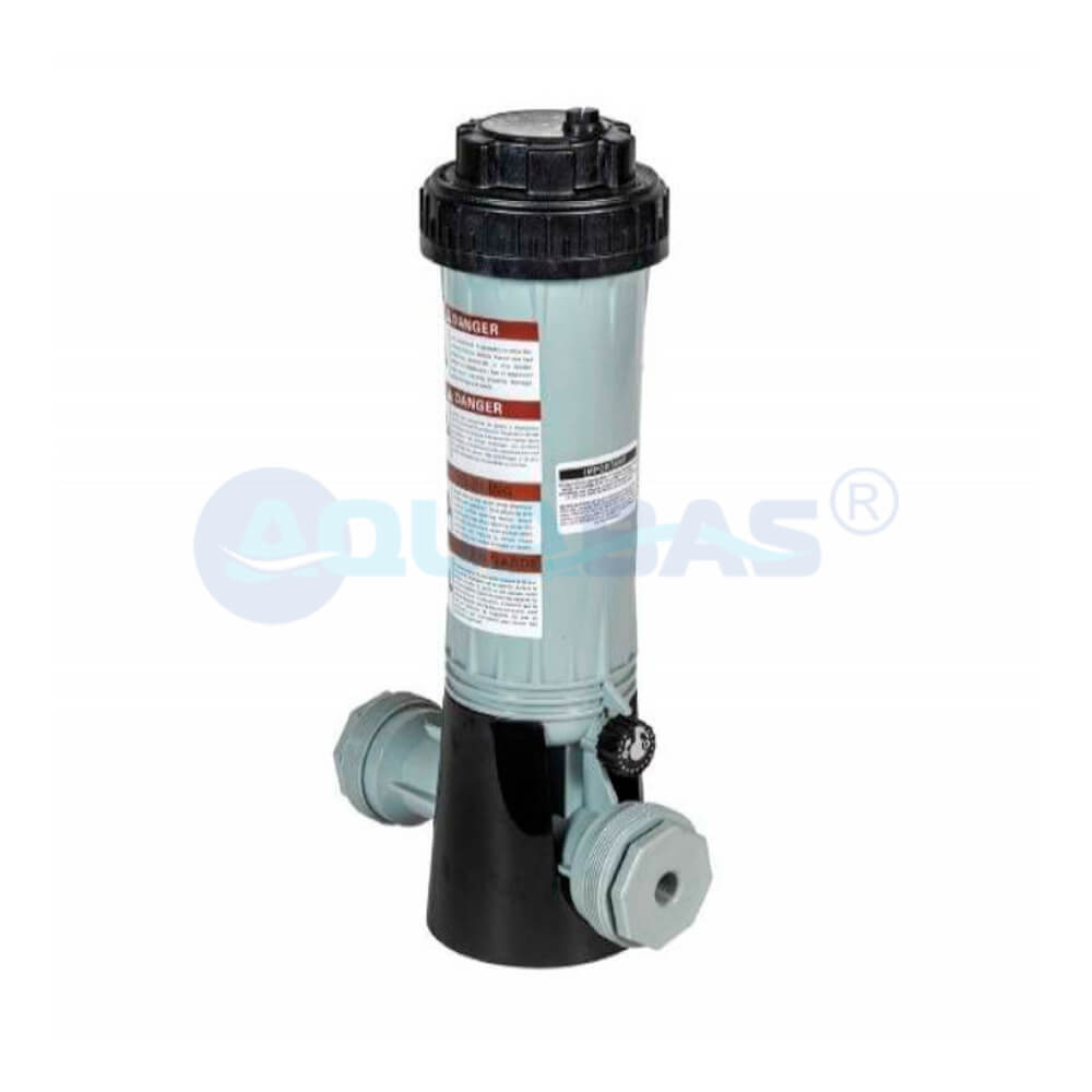 Оснащен встроенным регулятором для контроля дозировки растворенного хлора/брома, что позволяет обеспечивать регулируемую подачу дезинфицирующего раствора в бассейн. Рекомендуется установить устройство в конце системы водоподготовки, чтобы избежать повреждения оборудования химическими реагентами.