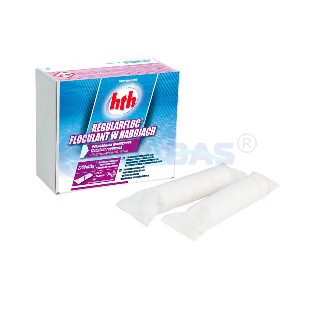 Коагулянт в картриджах hth REGULARFLOC 1,25 кг арт. S800800H9 на основе водного сульфата алюминия для песчаных фильтров.
