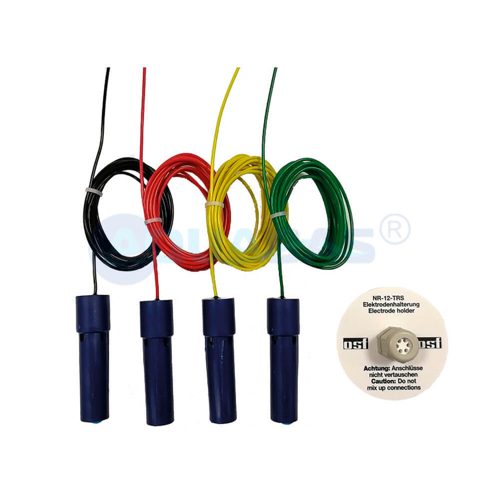 Комплект из четырех навесных электродов (303.000.0113), выполненных из устойчивой к воздействию воды и озона стали V2A (AISI-304), предназначен для использования с блоками управления OSF моделей NR-12-TRS-2 и NR-12-TRS-3.