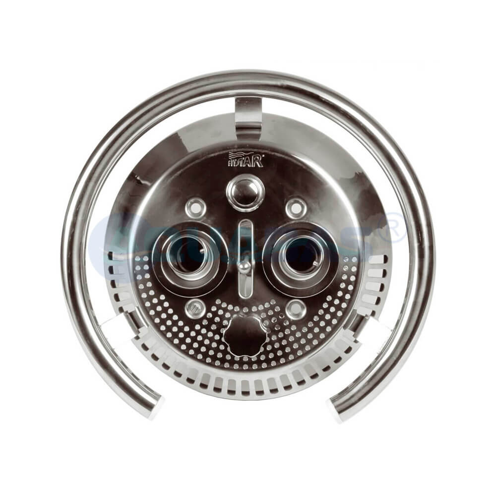 Лицевая панель Hugo Lahme Fitstar (артикул 87309920) для противотока TAIFUN-DUO. Используется для формирования искусственного течения в частных и общественных бассейнах. Рекомендуемая глубина установки сопла – 200-250 мм ниже уровня воды. Материал панели – полированная нержавеющая сталь AISI-316L, обеспечивающая долговечность и эстетичный внешний вид. Включение противотока происходит при помощи пьезокнопки, расположенной прямо на панели.