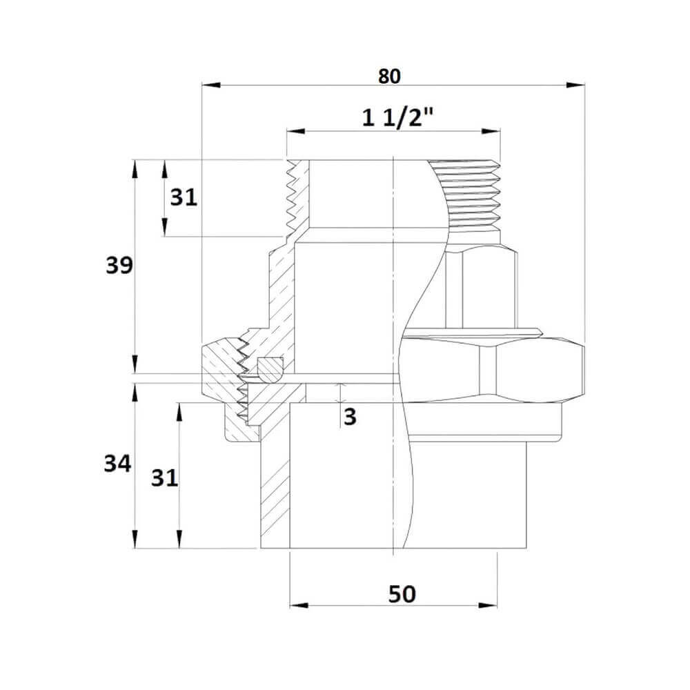 Разборная муфта Gemas из ПВХ и латуни 63мм х 2" НР (133475) служит для стыковки труб различного калибра и материала на прямолинейных отрезках трубопроводной сети.