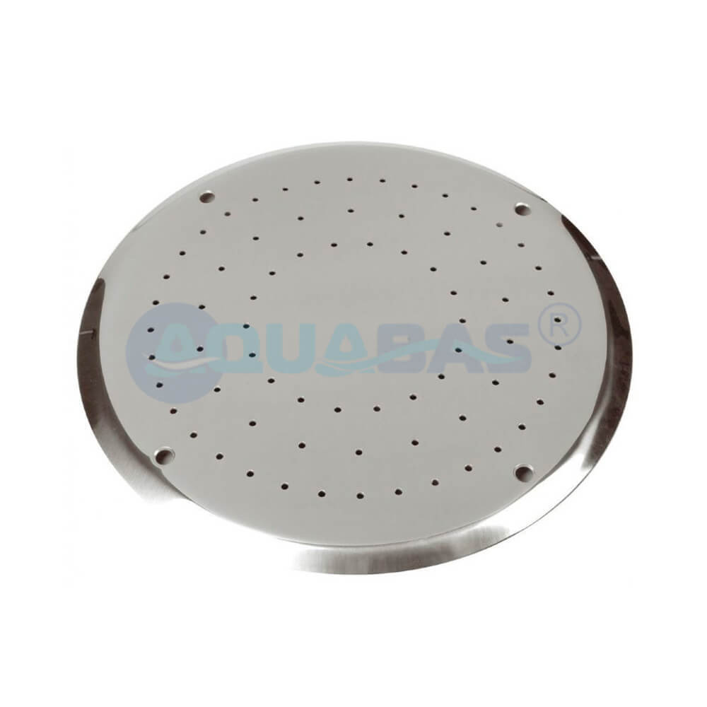 Круглая лицевая панель для аэромассажа, изготовленная из нержавеющей стали AISI316 (артикул 8531020). Используется в качестве накладки для распределения воздуха. Для установки требуется закладная деталь для воздушной платы и совместимый компрессор.