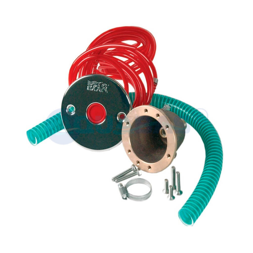 Комплект Hugo Lahme FitStar 7010120 включает в себя пневматическую кнопку из нержавеющей стали и бронзы, обеспечивающую безопасное управление аттракционами бассейна посредством давления воздуха.