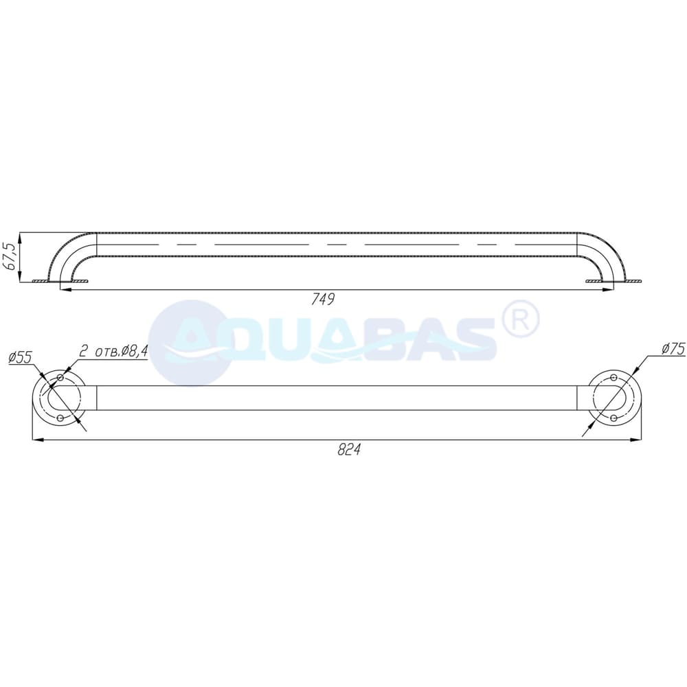 - Габаритные размеры: высота 67,5 мм, длина 824 мм.