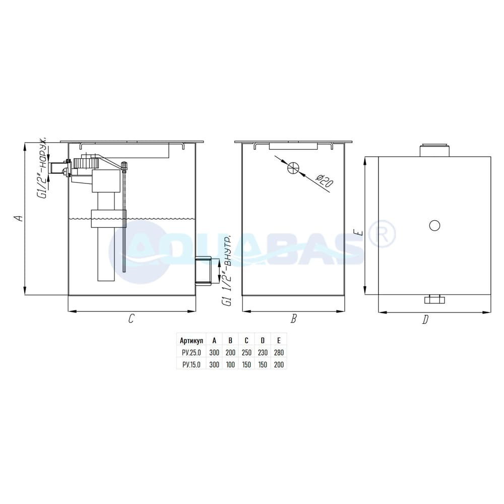 РУ.15.0 Регулятор уровня воды 150х100х290 1,5" (внутр.)