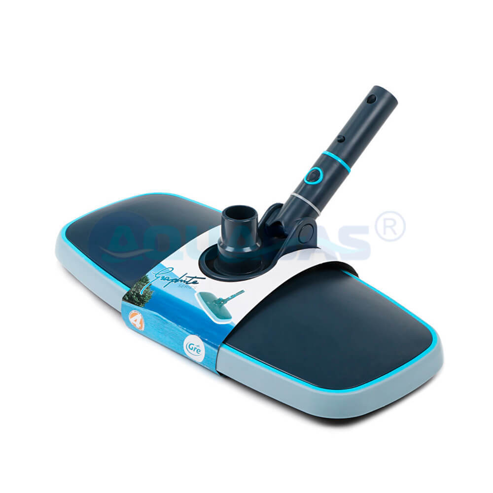 Вакуумная щетка Gre VHRP40 предназначена для эффективной очистки дна бассейна. Вращающееся соединение предотвращает перекручивание шланга. Для работы требуется телескопическая штанга и шланг Ø32-38 мм, подключение к системе фильтрации через скиммер или форсунку.
