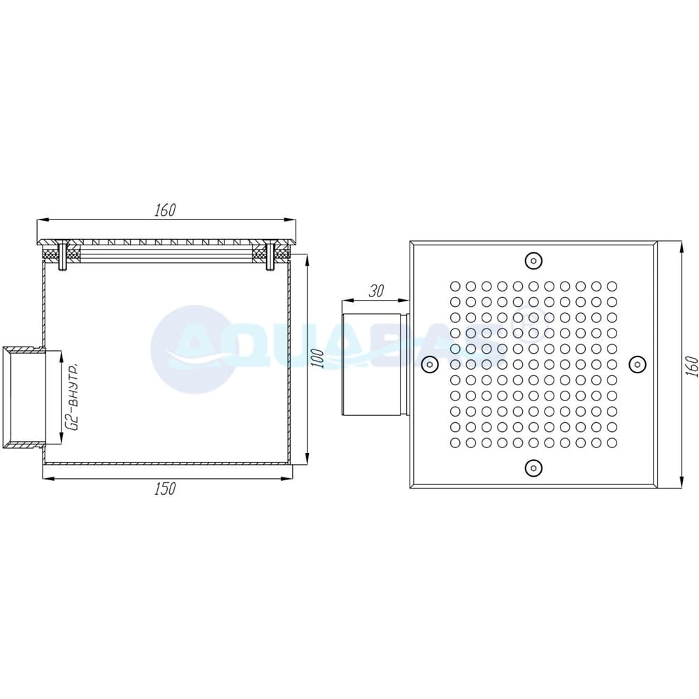 Слив имеет боковое подключение для подсоединения трубопровода. Если в вашем случае более удобен нижний подвод воды, вы можете рассмотреть этот водозабор в качестве альтернативы, он имеет аналогичное подсоединение – 2" внутр. резьба и выполнен из нержавейки марки AISI 316.