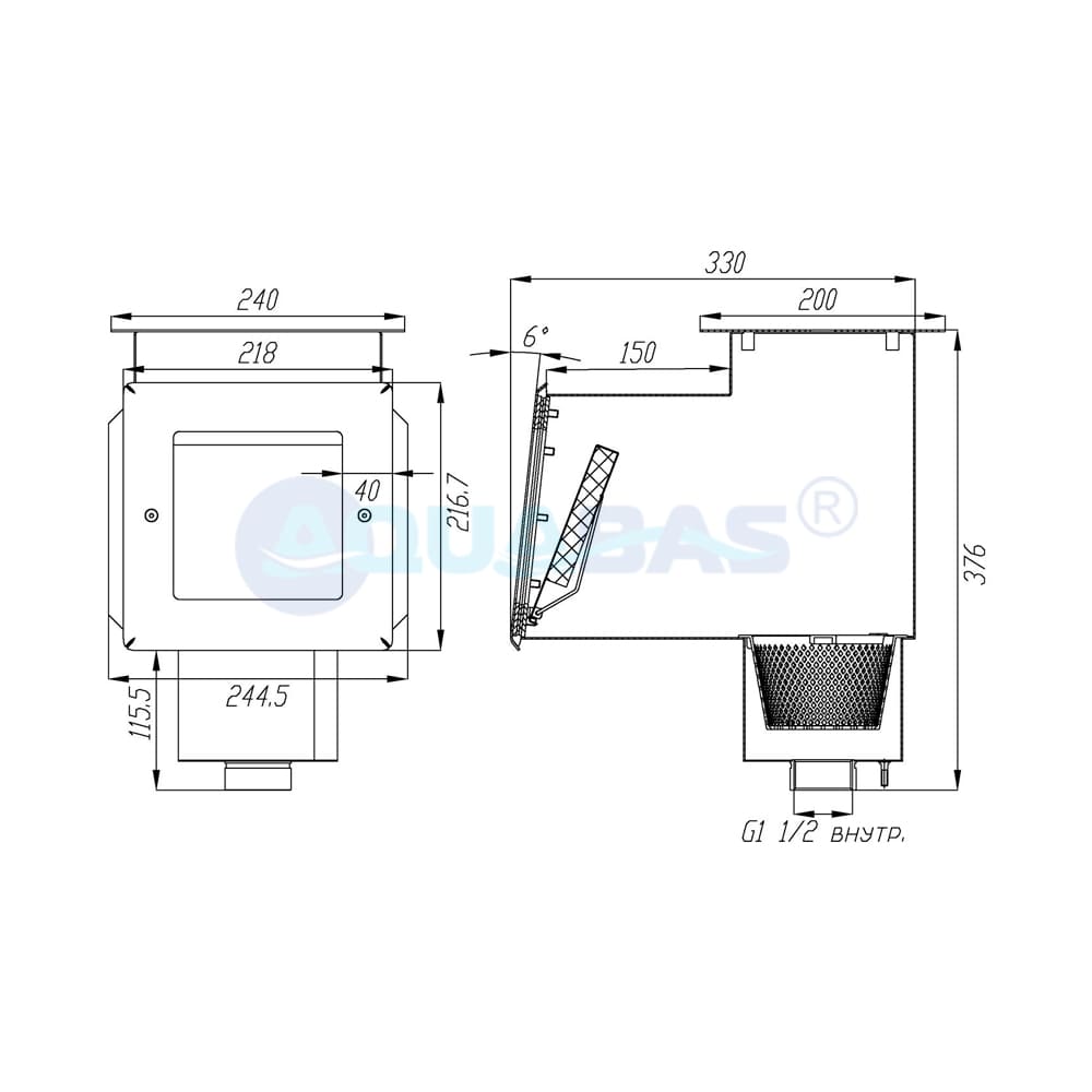 Встраиваемые скиммеры, забирая через приемное окно воду из чаши бассейна, выполняют функцию очистки поверхностного слоя воды от частиц плавающего мусора. Для сбора и периодического удаления собранного мусора в комплект устройства входит съемная корзина из ABS-пластика.