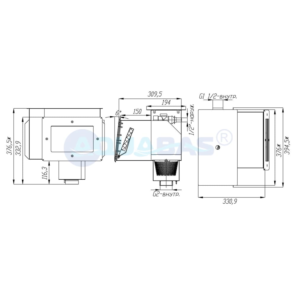 - Подсоединение аварийного перелива - внутренняя резьба 1 1/2’’, трубопровод автодолива - наружная резьба 1/2’’.