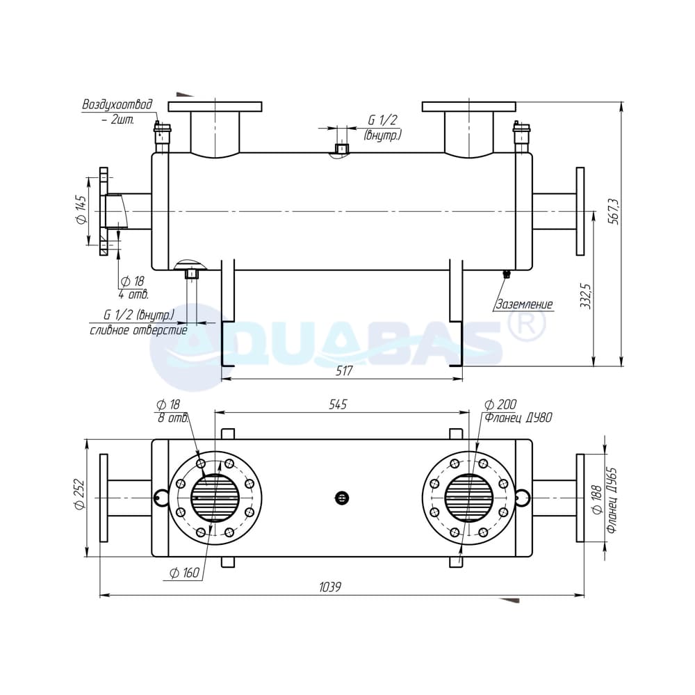 Данная модель имеет приваренные опоры и предназначена для напольного размещения и эксплуатации в горизонтальном положении.