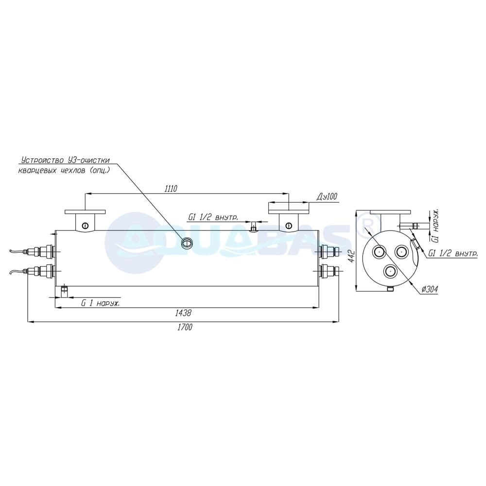 По индивидуальному заказу покупателя корпусные элементы установки могут быть изготовлены из более стойкой к коррозии нержавеющей стали марки AISI-316. Кроме того, по решению заказчика мы можем изменить диаметр и расположение присоединительных трубных фланцев. Для клиентов, предпочитающих автоматизированные решения, мы можем поставить установку УФУ с блоком ультразвуковой очистки или блоком химической промывки кварцевых чехлов ламп.