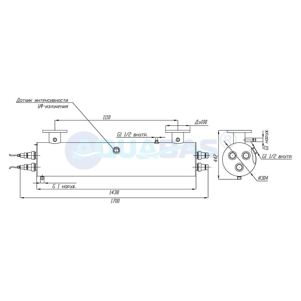 Еще одним важным элементом модели УФУ.100.БП является датчик контроля интенсивности излучения ультрафиолетовых ламп. Датчик откалиброван на УФ-излучение 254 нм и позволяет отслеживать спад его интенсивности из-за загрязнения кварцевых чехлов, чтобы своевременно запускать химическую очистку чехлов.