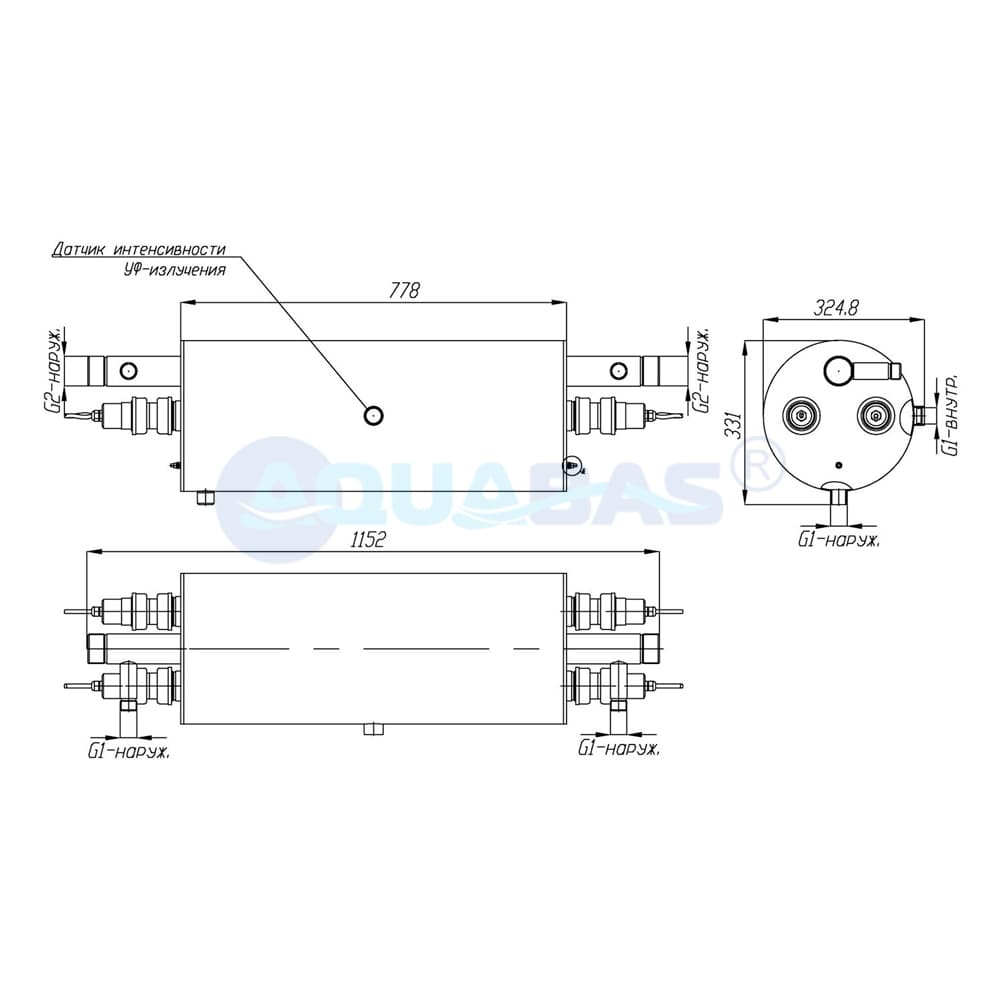 Производительность указана с учетом спада интенсивности излучения УФ-ламп в конце срока службы, а также коэффициента, учитывающего загрязнение кварцевых чехлов в процессе эксплуатации.