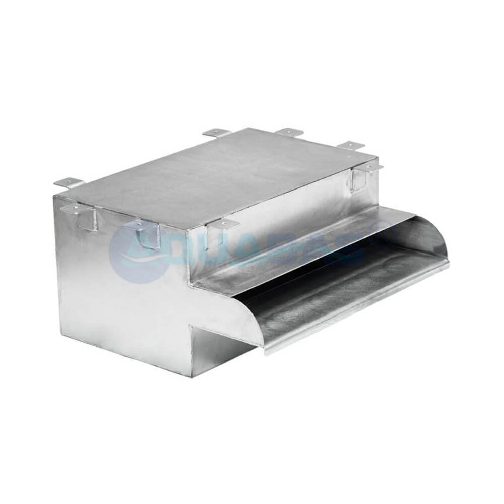 В отличие от моделей, которые монтируются непосредственно в борт плавательного бассейна, потолочный водопад с шириной излива 500 мм предназначен для крепления к потолку с помощью «ушек» в верхней части корпуса или установки в стеновую нишу.