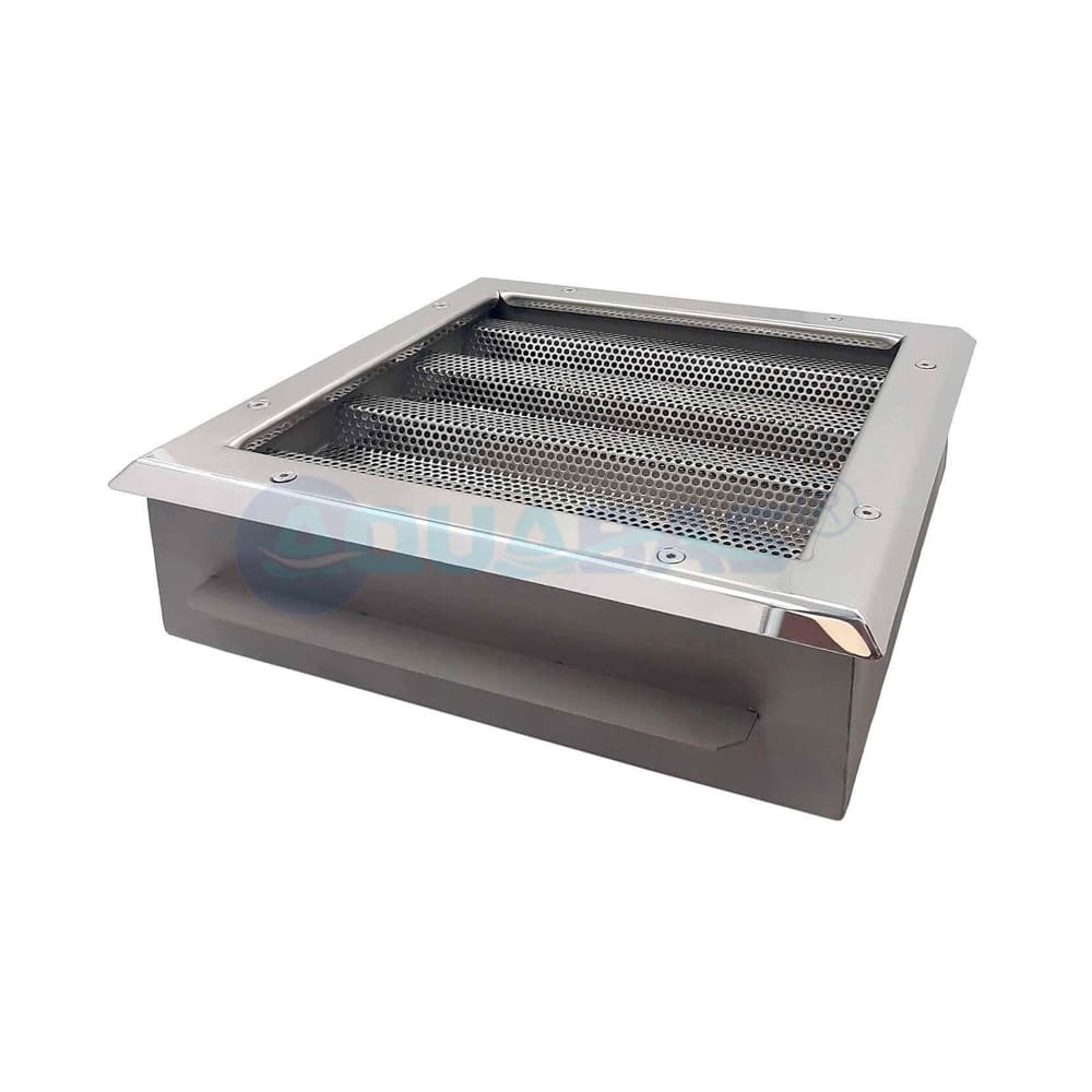 Квадратный водозабор с сетчатой крышкой 570х400 мм арт. ВЗ.9120.2 предназначен для организации работы мощных противотоков, водопадов и водяных горок в стационарных бетонных или композитных бассейнах с любым видом отделки.