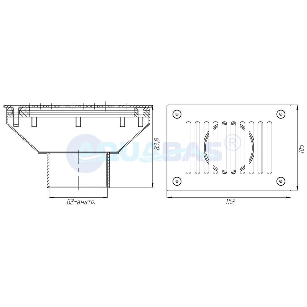 Забор переливного лотка под пленку арт. ВЗП.150.2/1 состоит из закладной части и прямоугольной крышки с прорезями. Заборник работает по принципу самотека - специальная трапециевидная форма закладной части обеспечивает бесшумный и эффективный сбор воды в систему фильтрации без застаивания в переливном лотке.